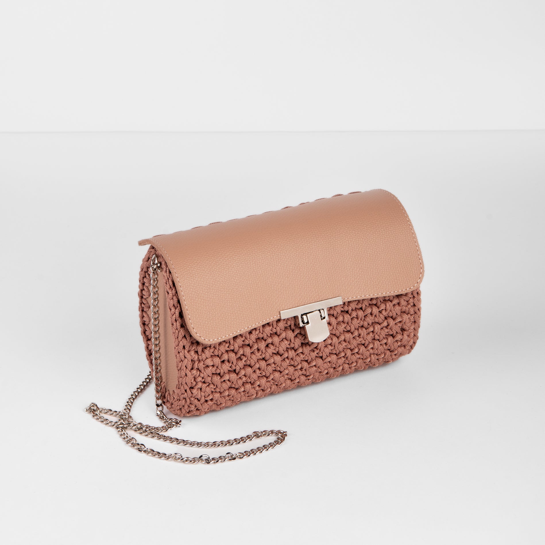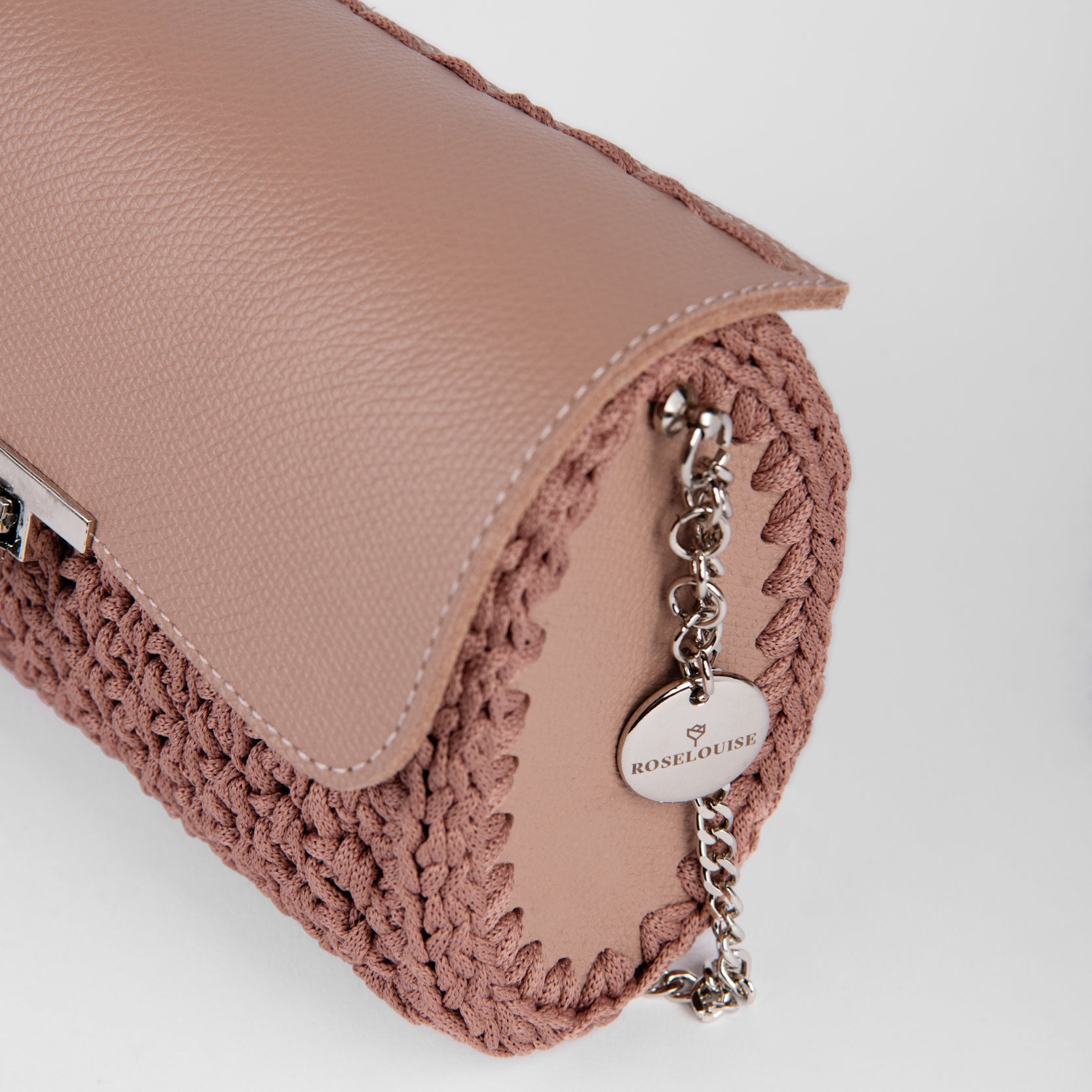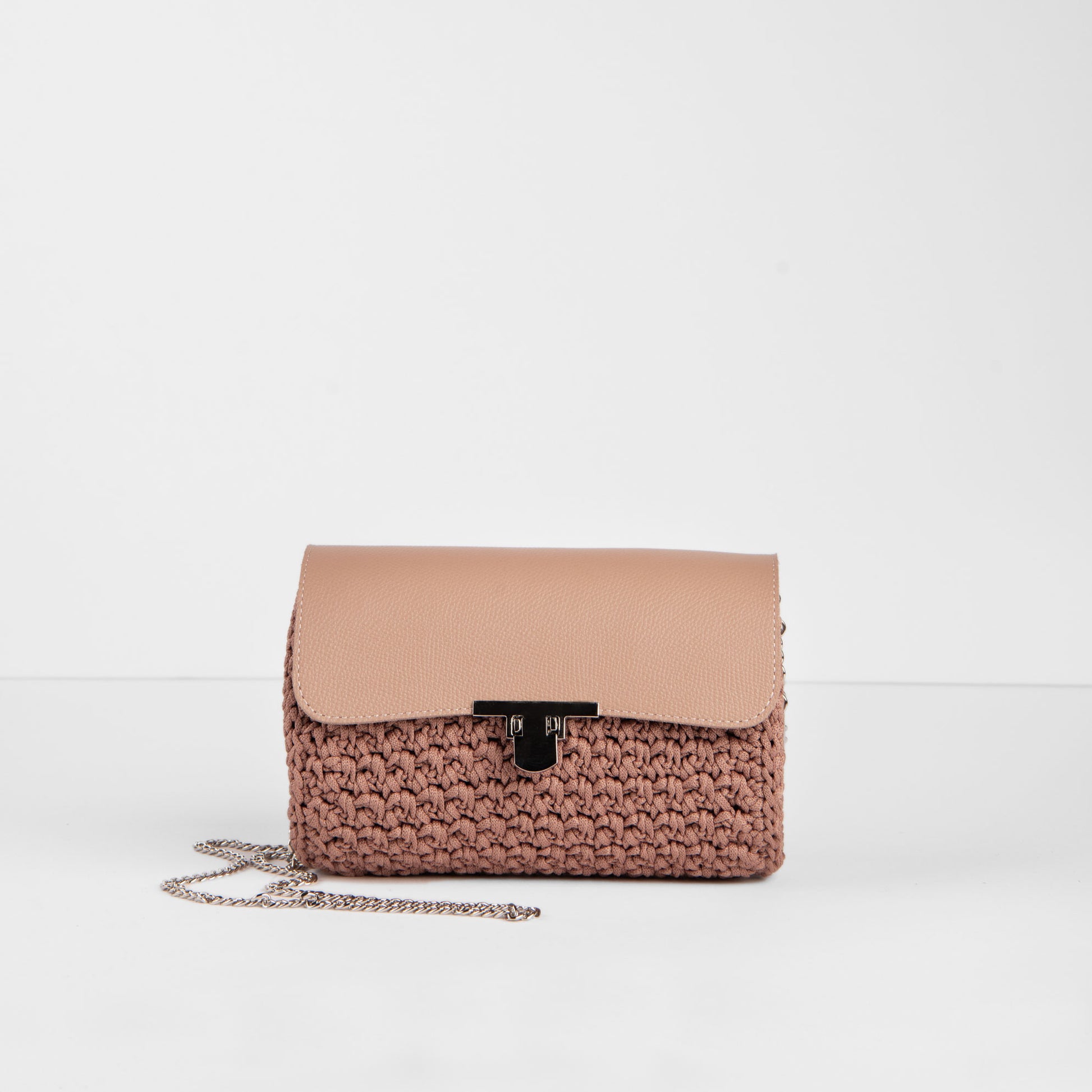 Un tocco di boho-chic per ogni outfit. Questa borsa, versatile e alla moda, unisce l'eleganza di una clutch alla praticità di una borsa a spalla. Realizzata in cordino italiano 100% polipropilene e vera pelle, è perfetta per chi ama uno stile unico e raffinato. La tracolla a catena argentata ti permette di indossarla come preferisci, a mano o a spalla. Disponibile in un delicato color cipria o in nero, è l'accessorio ideale per completare i tuoi look più romantici e sofisticati.