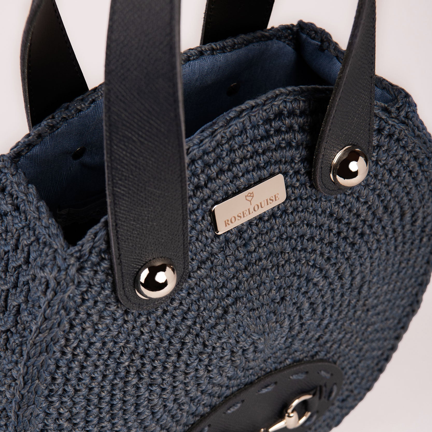 Stile: La Bucket - La Ronde è una borsa dallo stile classico con un tocco moderno. La combinazione tra il tessuto intrecciato a mano e la pelle liscia crea un contrasto interessante, mentre il colore blu scuro le conferisce un'eleganza senza tempo. È perfetta per essere abbinata a look casual e sofisticati allo stesso tempo.