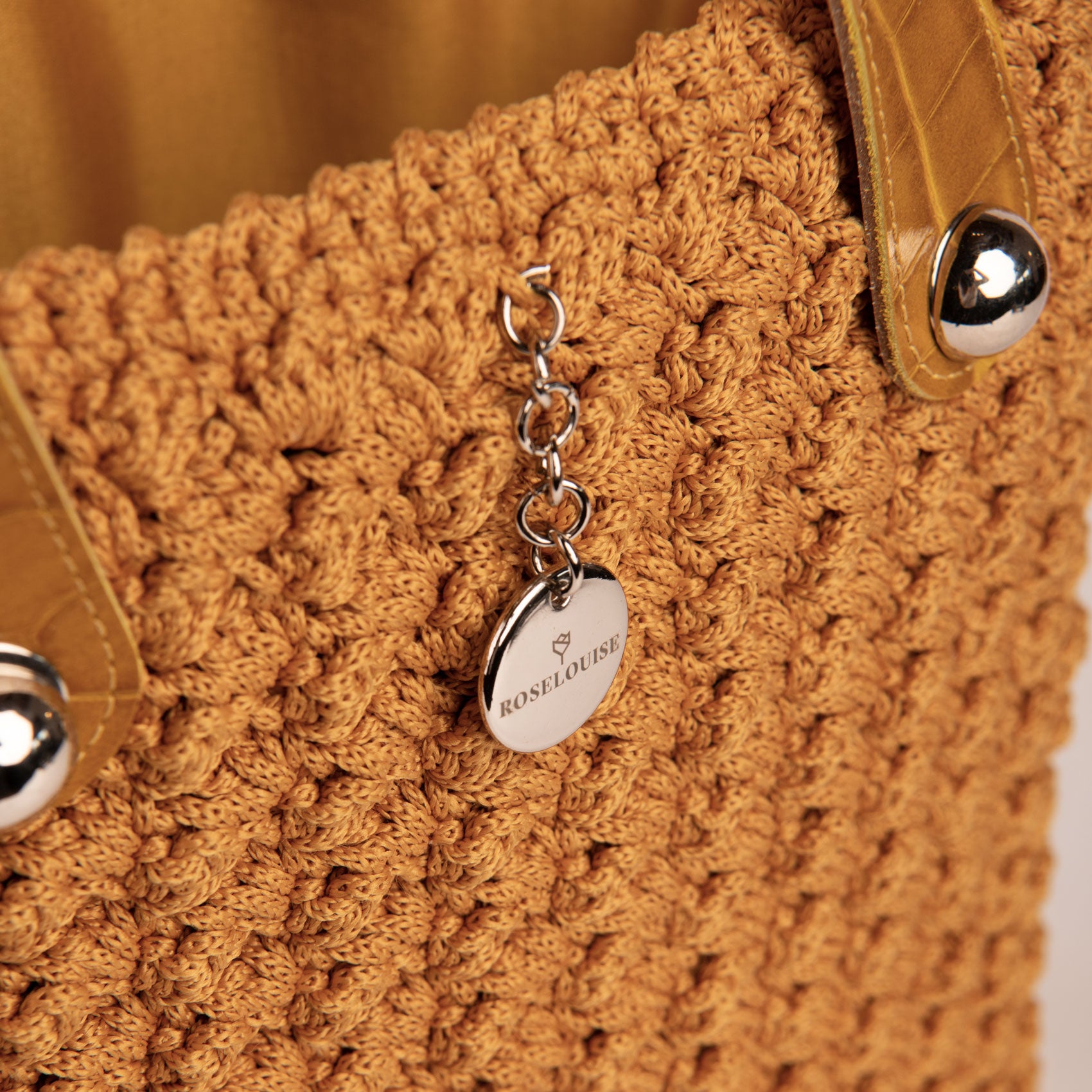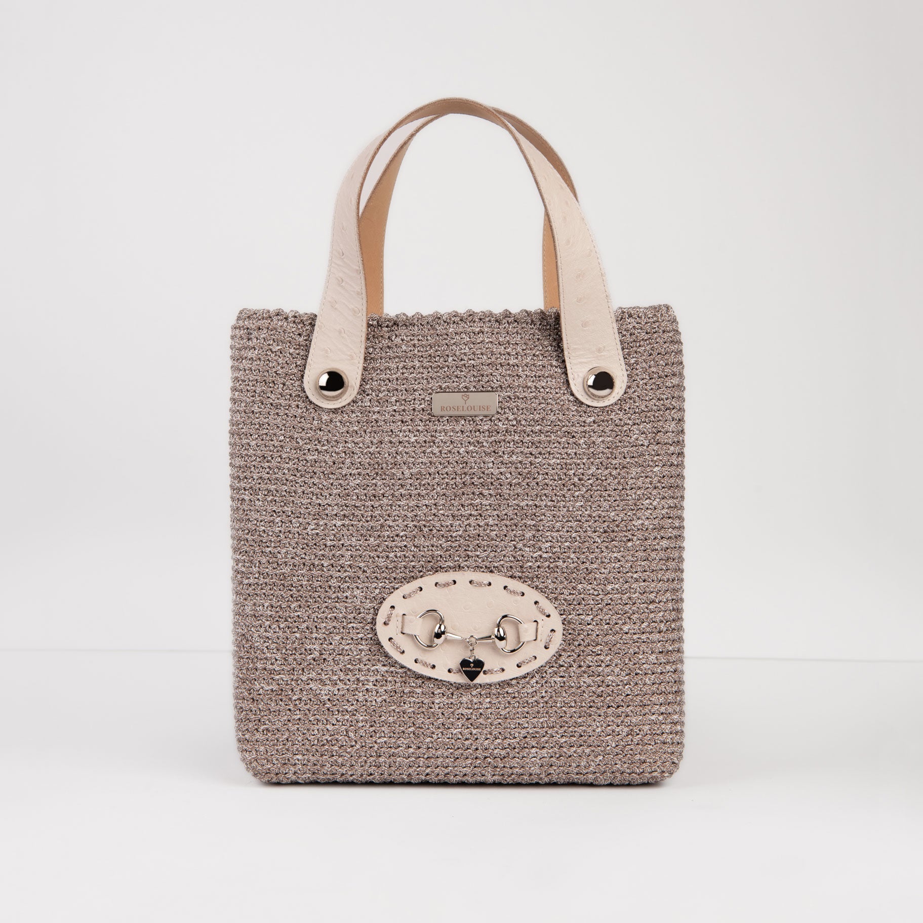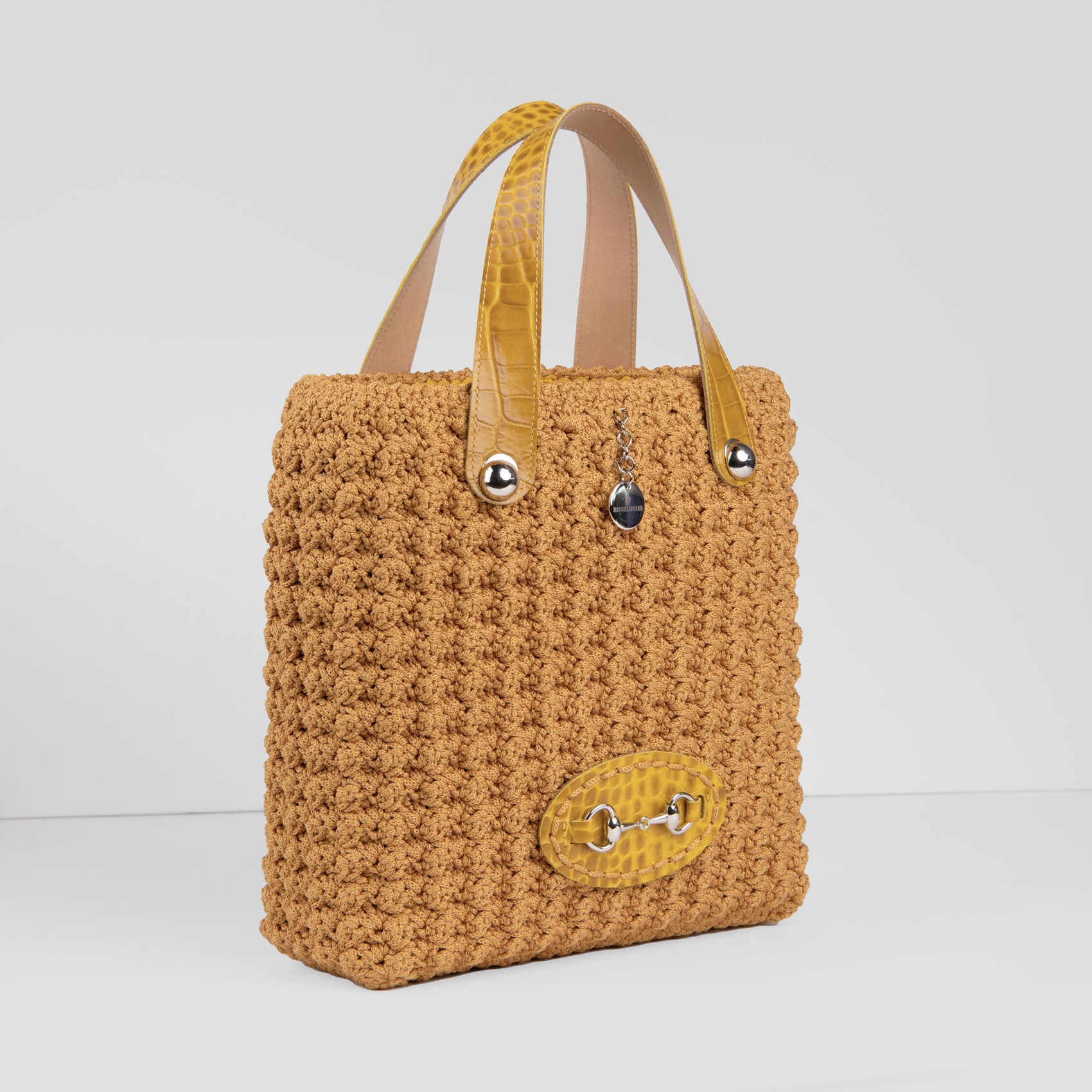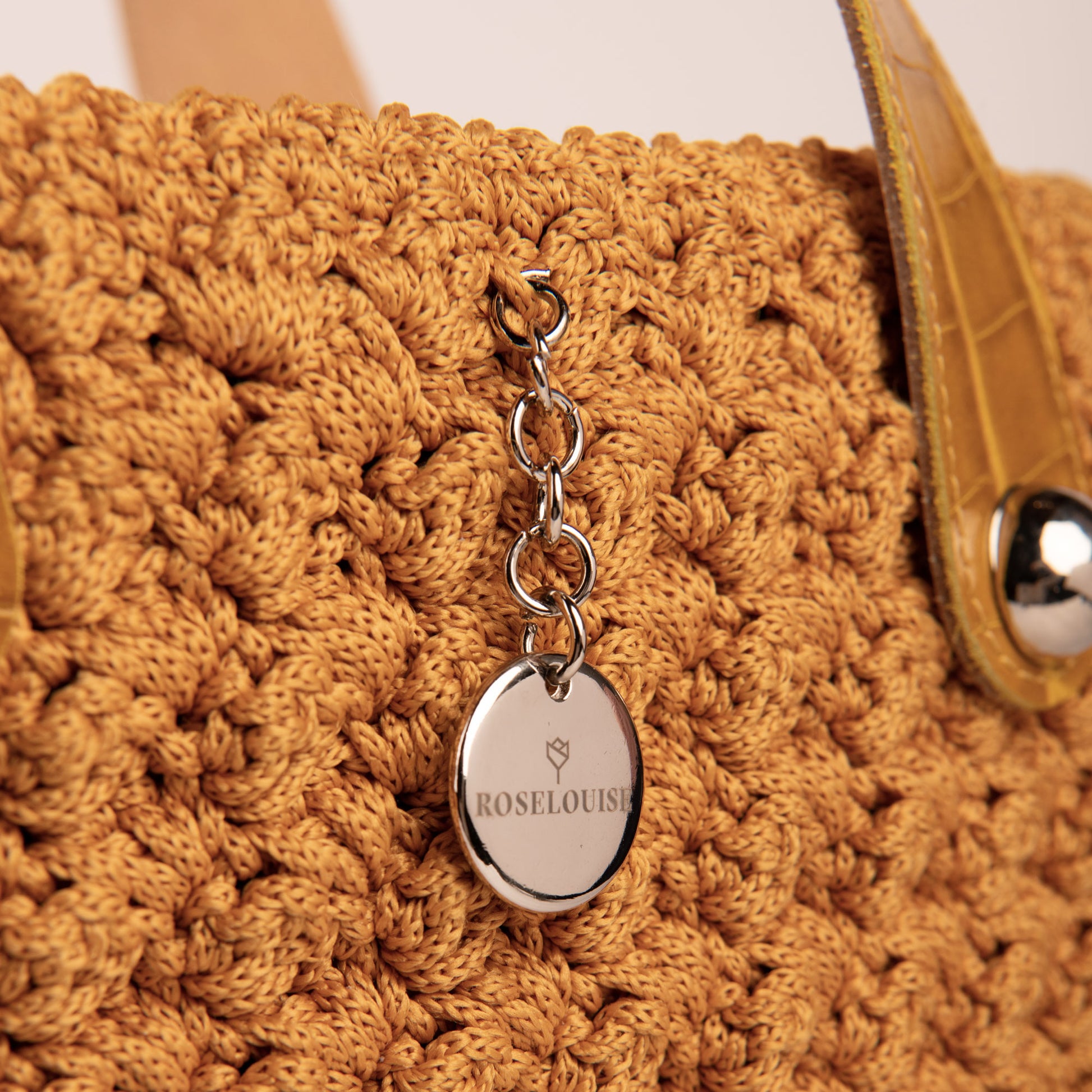 Materiale: La borsa è realizzata in cordino 100% poliestere intrecciato a mano, che le conferisce un aspetto artigianale e una texture morbida e piacevole al tatto. Il colore le dona un'eleganza discreta e raffinata.